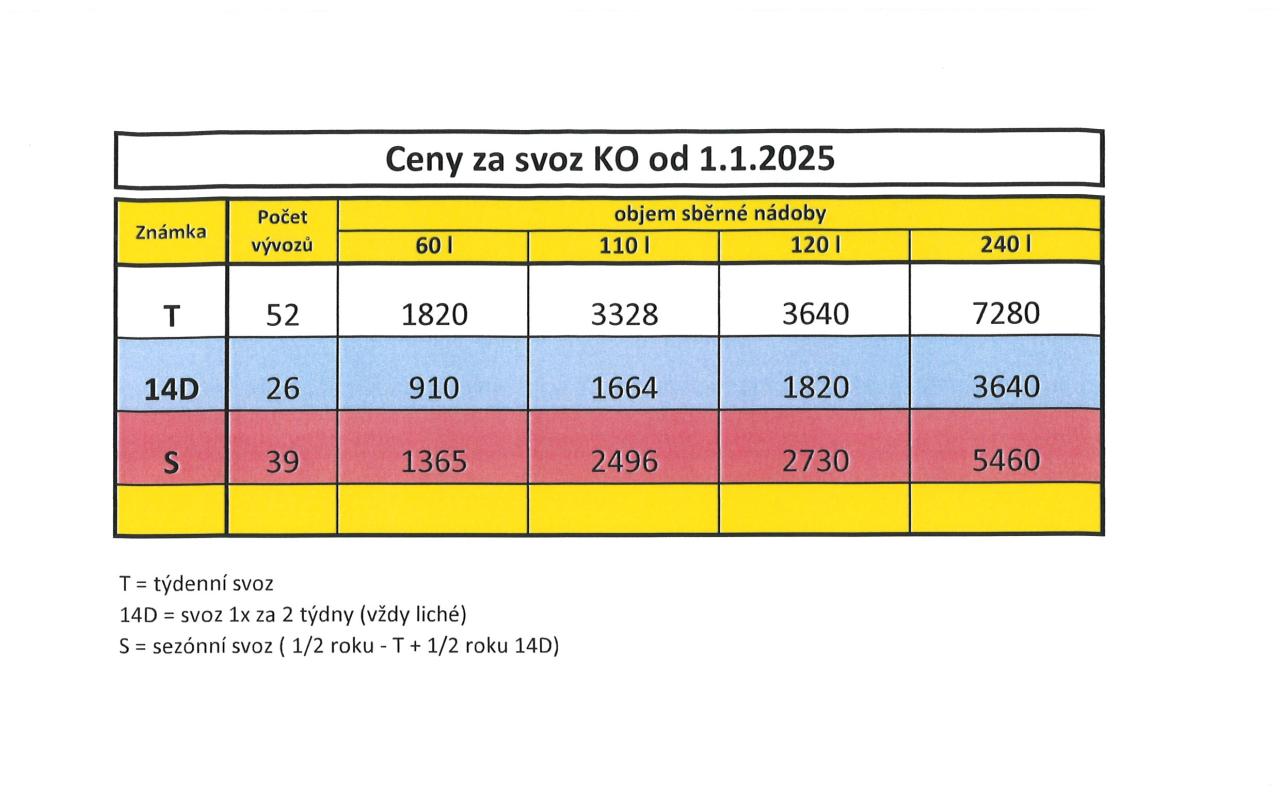 Změna cen za svoz a likvidaci směsného odpadu pro r. 2025