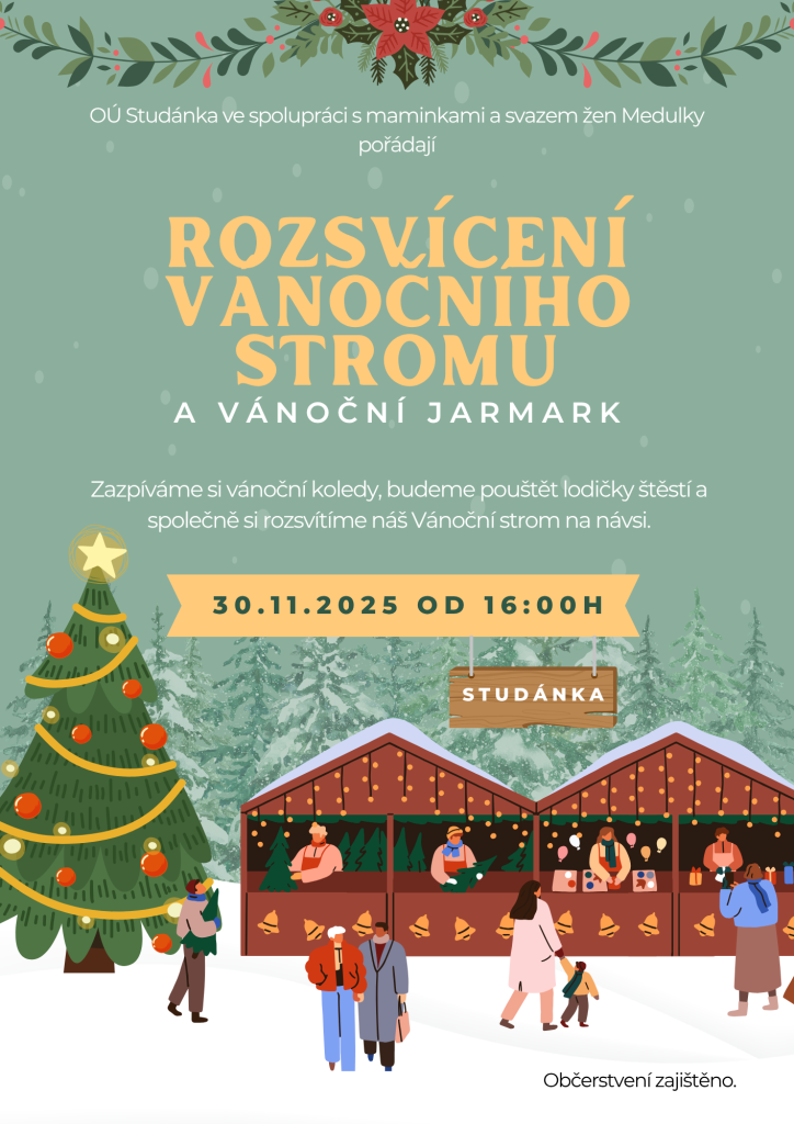 Zveme Vás na novou akci Rozsvícení vánočního stromu a vánoční jarmark. V rámci akce vypustíme lodičky štěstí a společně si zazpíváme vánoční koledy. A advent muže začít!