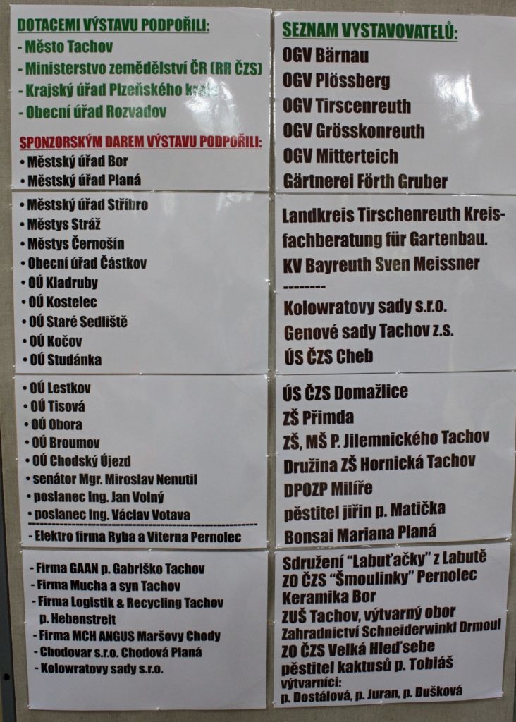 Územní sdružení českého zahrádkářského svazu Tachov & Městské kulturní středisko Tachov připravilo výstavu českých a bavorských zahrádkářů k 60.výročí. Naše obec také přispěla menším finančním darem. Naše keramika společně s DDM Mraveniště Tachov nesměla chybět mezi všemi zahradnickými skvosty. Výstava byla zahájena v pátek 22.9.2017 v 9.00 hodin a ukončena v pondělí 25.9.2017 v 15.00 hodin
