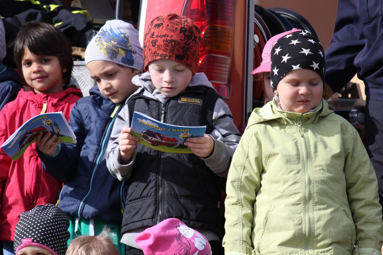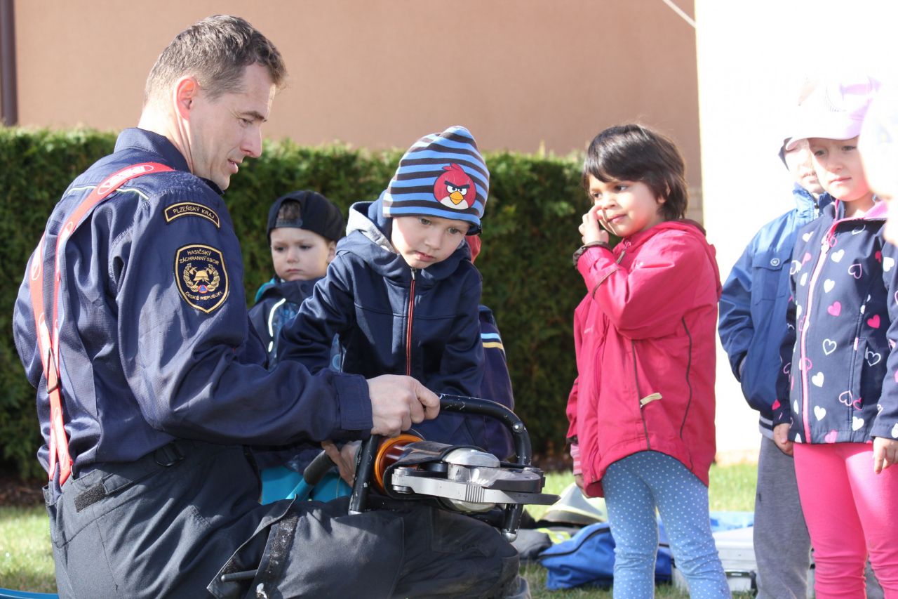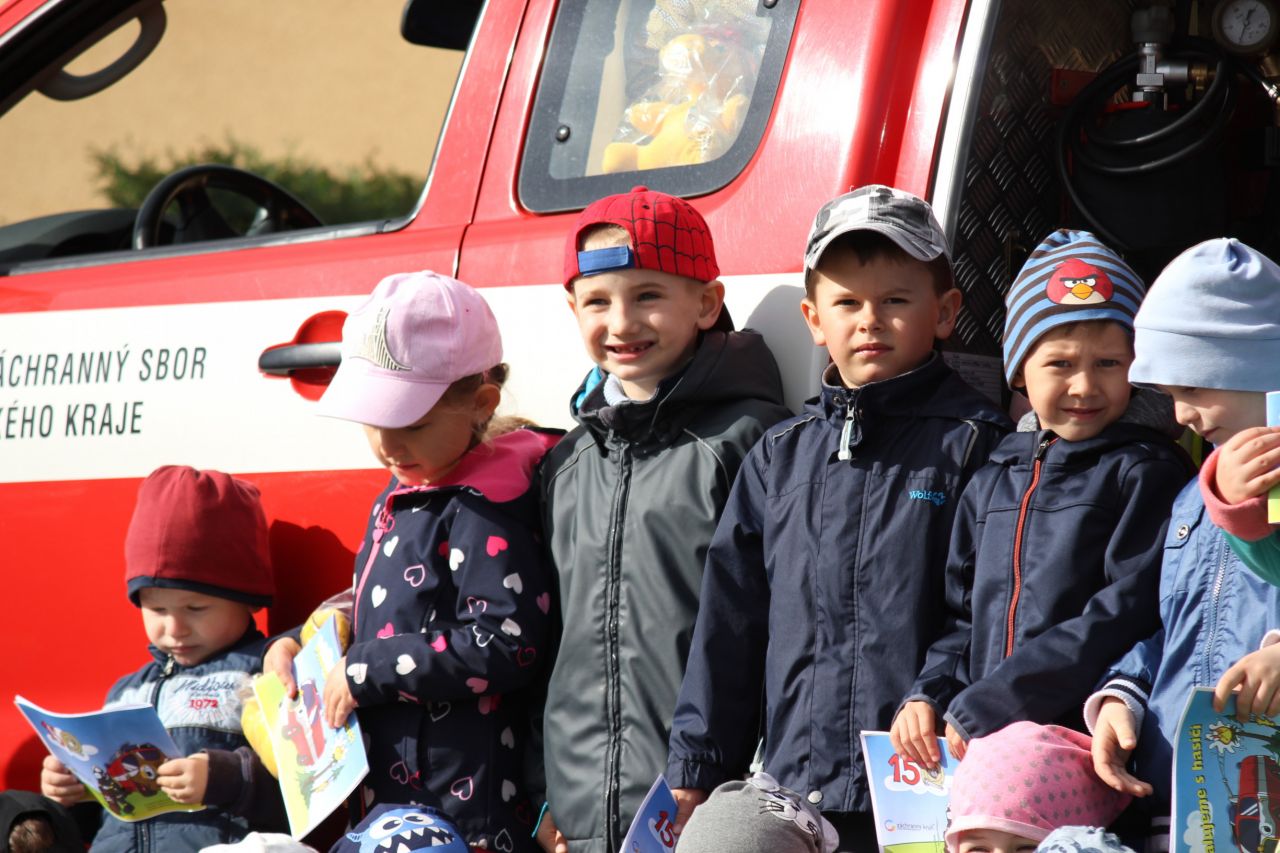 Rodiče našich dětí jsou různých profesí. Být hasičem je však přáním skoro každého malého kluka. Mateřinku navštívili s menším zásahovým vozem profesionální hasiči záchranného sboru Plzeňského kraje Tachov. Dětem předvedli stříkání z hadice, pneunůžky, houkačku a mnohé další. Děti měly možnost si vyzkoušet přilbu a oblek. Radost a nadšení byla v očích dětí nevídaná.