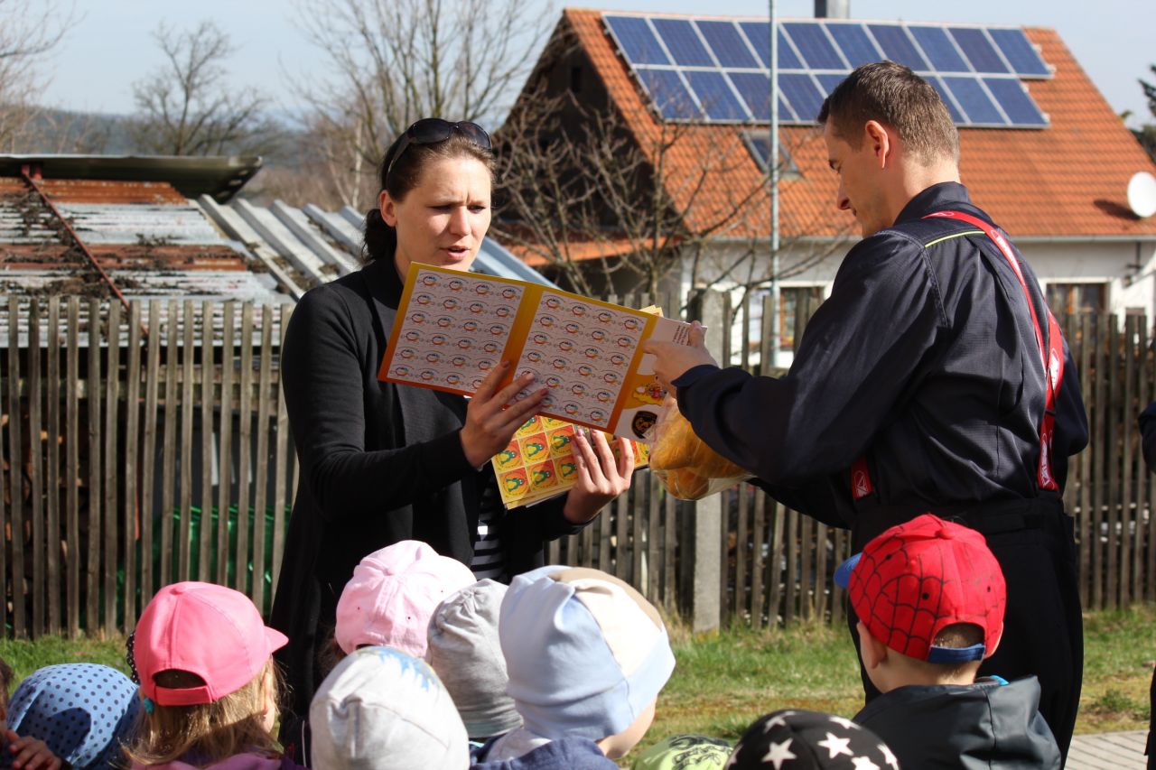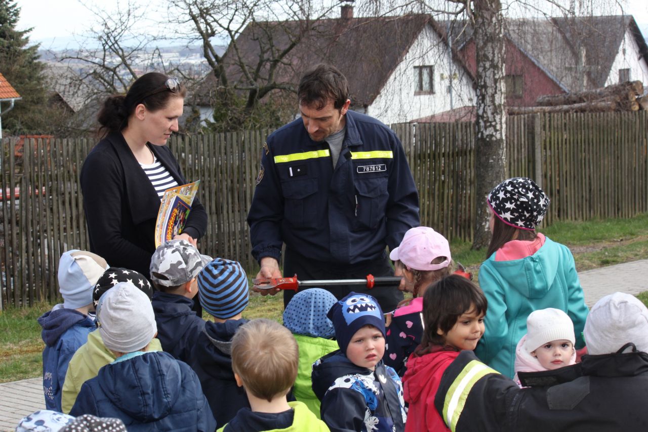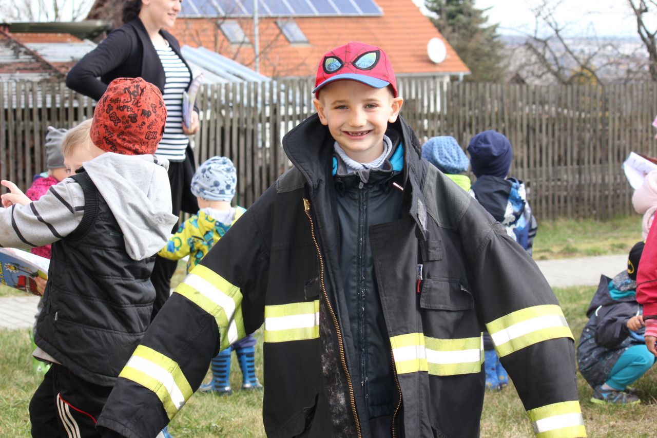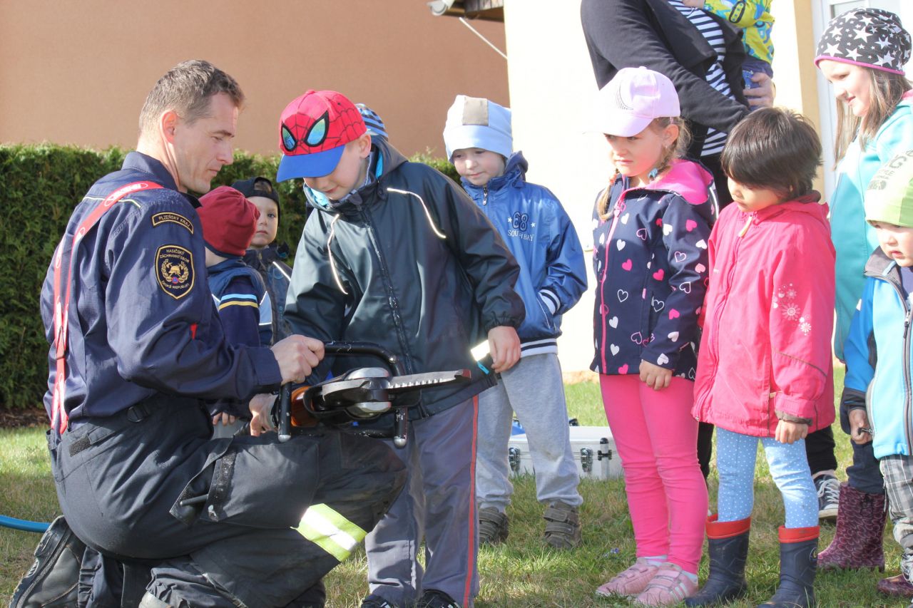 Rodiče našich dětí jsou různých profesí. Být hasičem je však přáním skoro každého malého kluka. Mateřinku navštívili s menším zásahovým vozem profesionální hasiči záchranného sboru Plzeňského kraje Tachov. Dětem předvedli stříkání z hadice, pneunůžky, houkačku a mnohé další. Děti měly možnost si vyzkoušet přilbu a oblek. Radost a nadšení byla v očích dětí nevídaná.