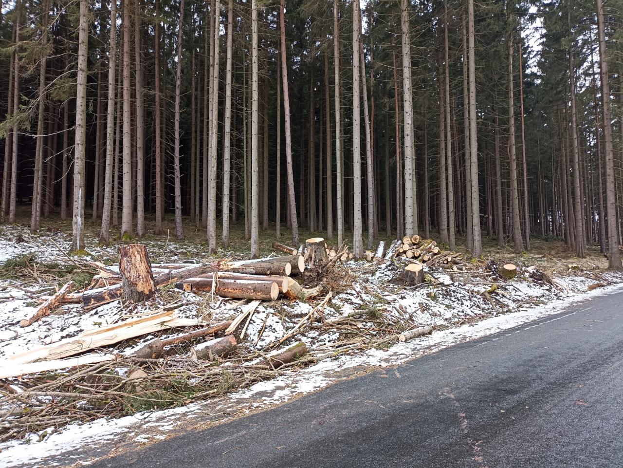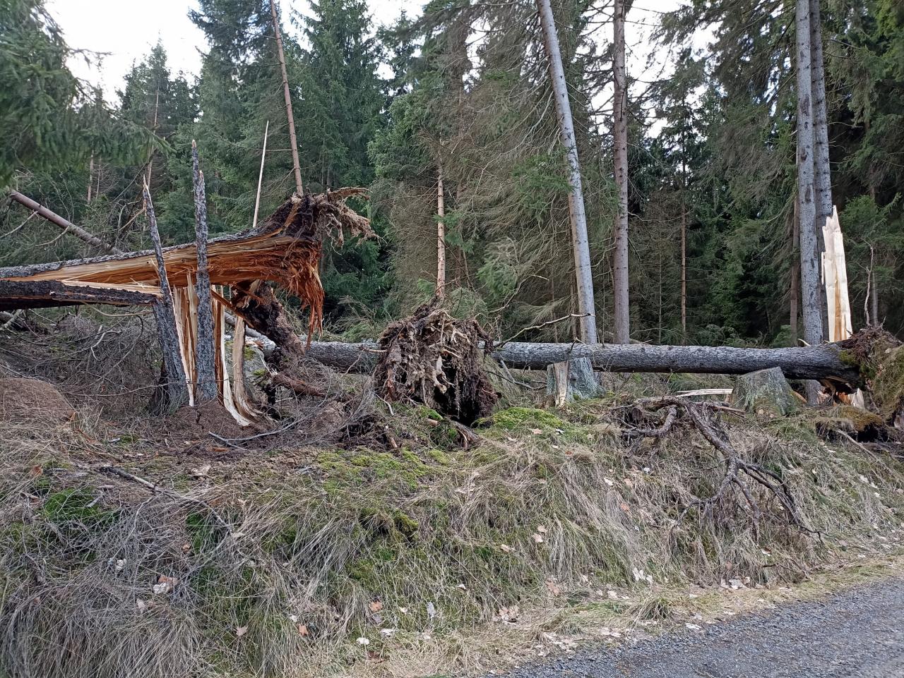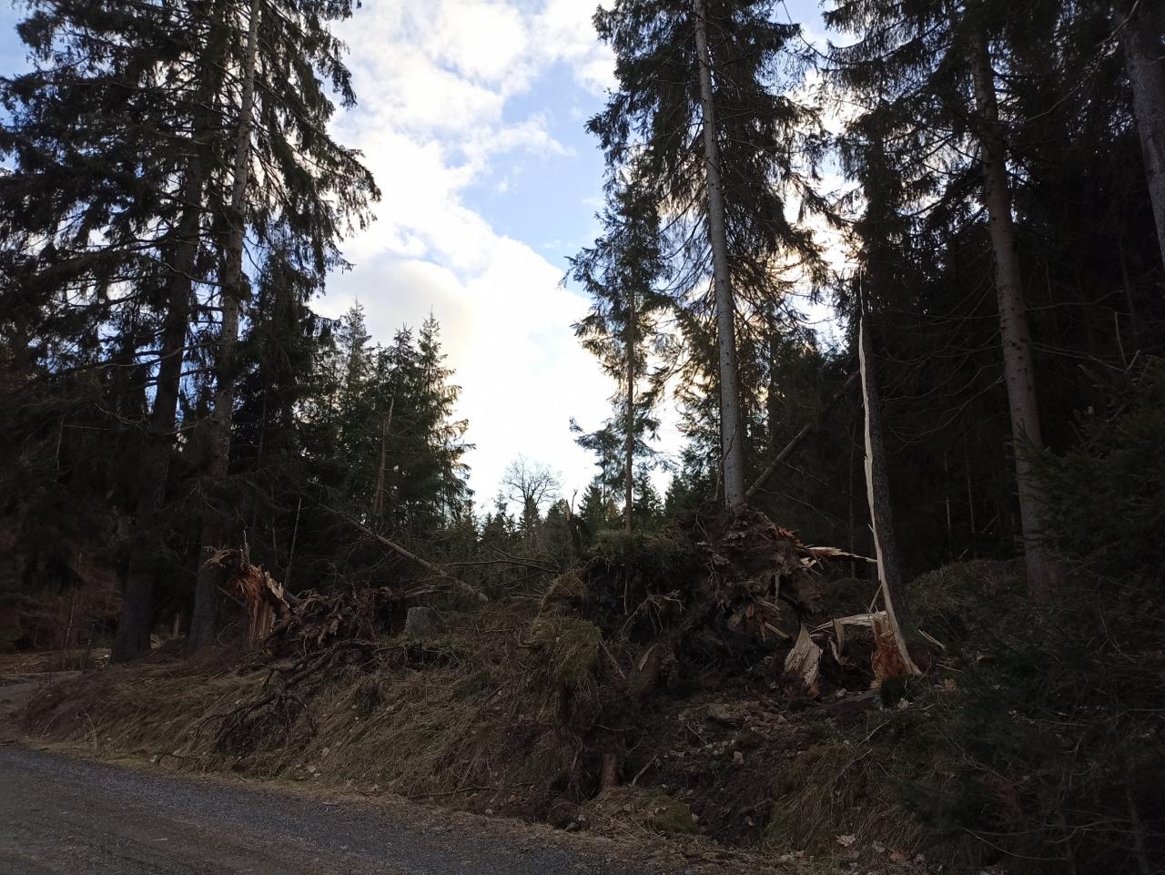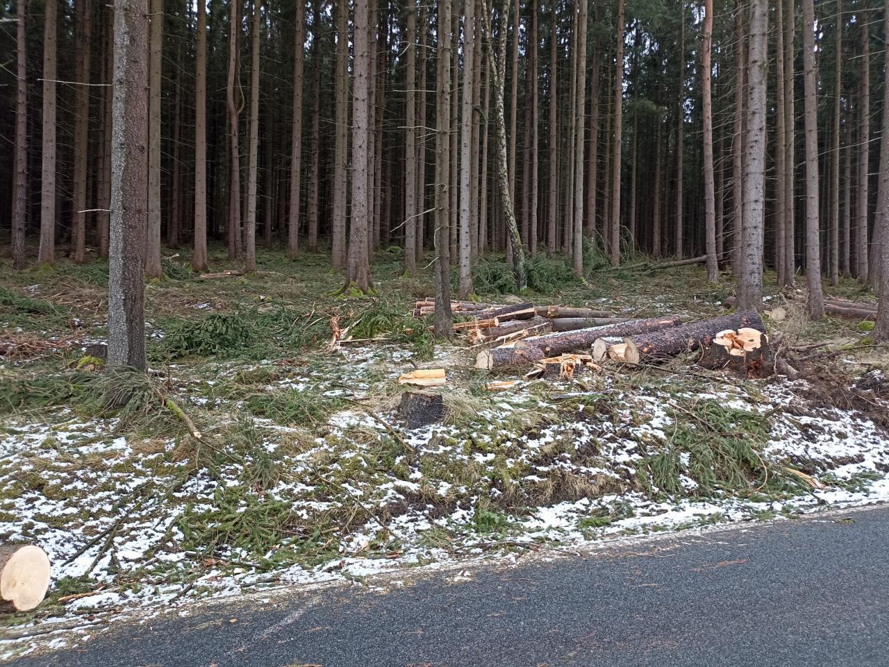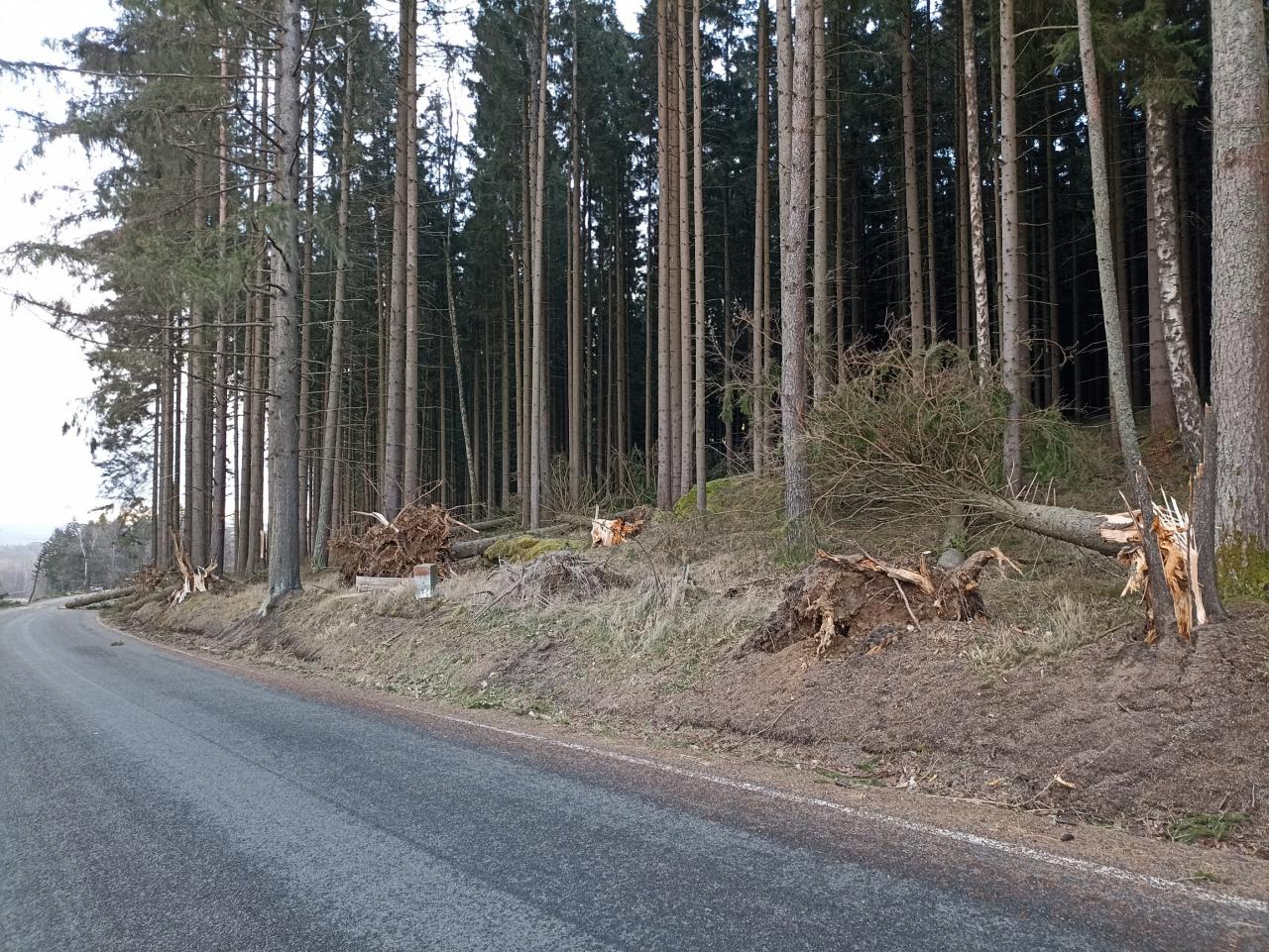 Vichřice Eunice přišla náhle, silným úderem v pátek večer 18.2. kolem 20:30 h. Okamžitě lámala stromy, které ve Studánce zatarasily cestu na Písařovu Vesci a napadaly také přes příjezd k vysílači na Rozsoše. K zásahu byla povolána výjezdní jednotka studáneckých dobrovolných hasičů a poté na pomoc přijeli také profesionálové z Tachova. Ve ztížených podmínkách zprůjezdnili jeden jízdní pruh a těsně před půlnocí zásah ukončili. Sobotní ráno akce pokračovala organizací odtěžení stromů lesnickou technikou s cílem zcela uvolnit silnici. Pružně zareagovala firma Řeháček, která vykonává pro obec většinu těžařské práce v lese a poskytla harvestor. Byl domluven jeho převoz do Studánky a angažován domácí operátor, Piškot ( p. Lipchavský), který přerušil práce na zakázce v Aši. Domluvena byla rovněž pomoc údržbáře, p. Dvořáka, na obecním traktoru a řízení dopravy zajistili za výjezdní jednotku hasičů otec a syn Duspivovi. Akci zahájil a koordinoval místostarosta, p. Mráz, před 13h a hotovo bylo kolem 14:30h, kdy byla silnice průjezdná oběma pruhy. Harvestor pokračoval se zpracováním kalamity ,, u Jehlanů" a poté se přemístil pod Rozsochu a odstranil stromy ze silnice také tam. Tímto děkujeme všem zúčastněným, členům výjezdní jednotky SDH a všem výše zmíněným za včasnou a rychlou pomoc. V pondělí 21.2. přišel další vítr, jeho intenzita však naštěstí již nedosáhla páteční síly. Velké škody byly zaznamenány v obecním lese, jejich odstranění nás teprve čeká v příštích týdnech. Půda je však natolik rozměklá, že byl vjezd těžké těžařské techniky odložen na vhodnější dobu.