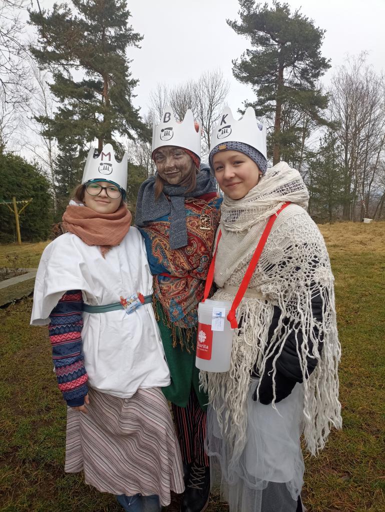 Dvanáct koledníků Tříkrálové sbírky, určené pro Domácí hospic Západ, z.s. , prošlo v sobotu 6.ledna 2024 Studánkou.